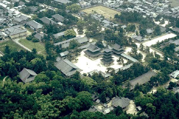Der Tempel Hôryû-ji liegt in der Nähe der alten Hauptstadt Nara und ist einer der schönsten und ältesten Tempel Japans. Darüber hinaus stellt er ein gutes Beispiel für eine typische Tempelanlage dar. Seine drei zentralen Bauwerke stammen aus dem siebenten Jahrhundert und gelten als die ältesten Holzbauten der Welt. Sie wirken schlichter als jüngere Gebäude und beeindrucken durch die starken hell-dunkel Kontraste. Doch auch die Gebäude des Hôryû-ji waren ursprünglich - getreu ihrem chinesischen Vorbild - rot bemalt. Ehemals lag hier das Anwesen von Prinz Shôtoku (Shôtoku Taishi), dem großen Reformer des frühen japanischen Staatswesens, der sich auch stark für die Übernahme des Buddhismus als Staatsreligion einsetzte.